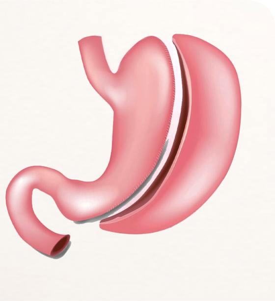 Also known as Sleeve Gastrectomy surgery is also a form of stomach reduction. During the procedure, a large part of the stomach is removed, leaving only a tube-like remnant. As a result, the patient experiences a feeling of fullness much more quickly when eating. After 6-8 months patients can lose up to 60-70 percent of their excess weight.